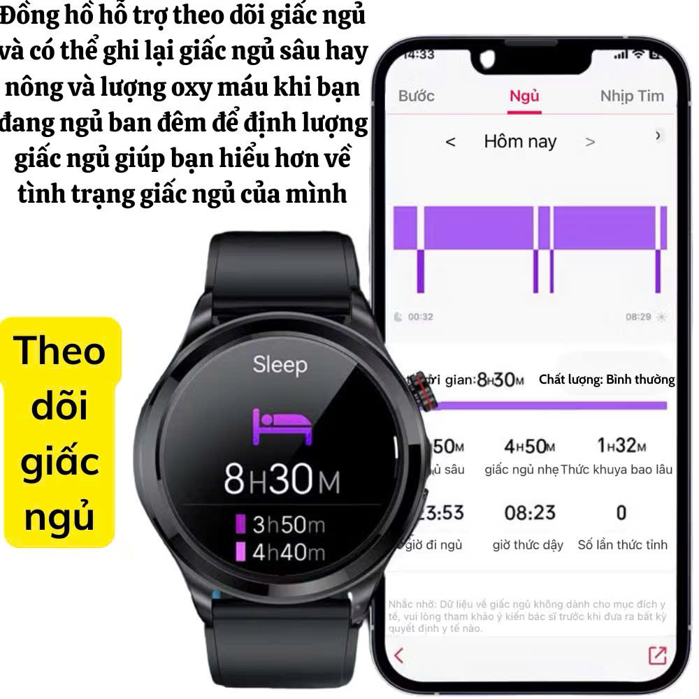 2. Theo dõi sức khỏe: theo dõi nhịp tim, huyết áp, lượng đường trong máu, oxy trong máu, áp suất, theo dõi giấc ngủ theo thời gian thực