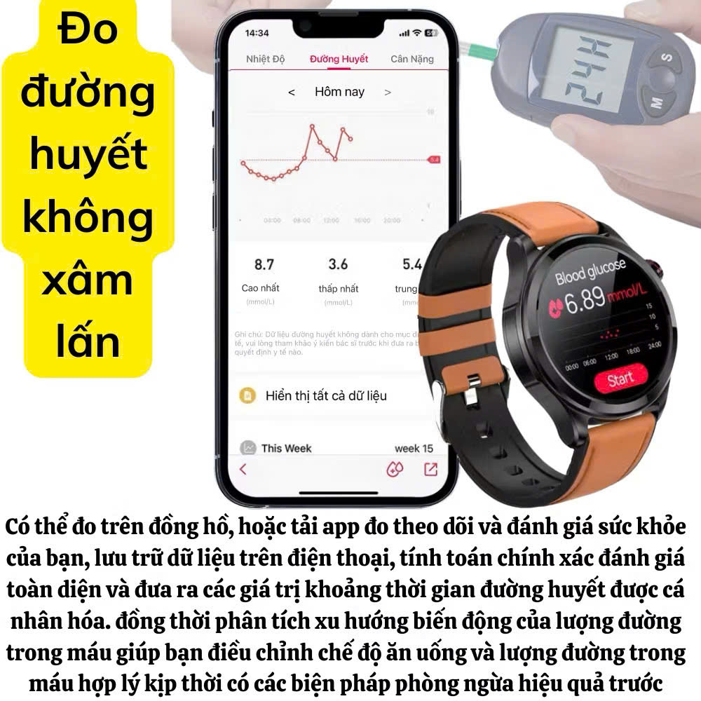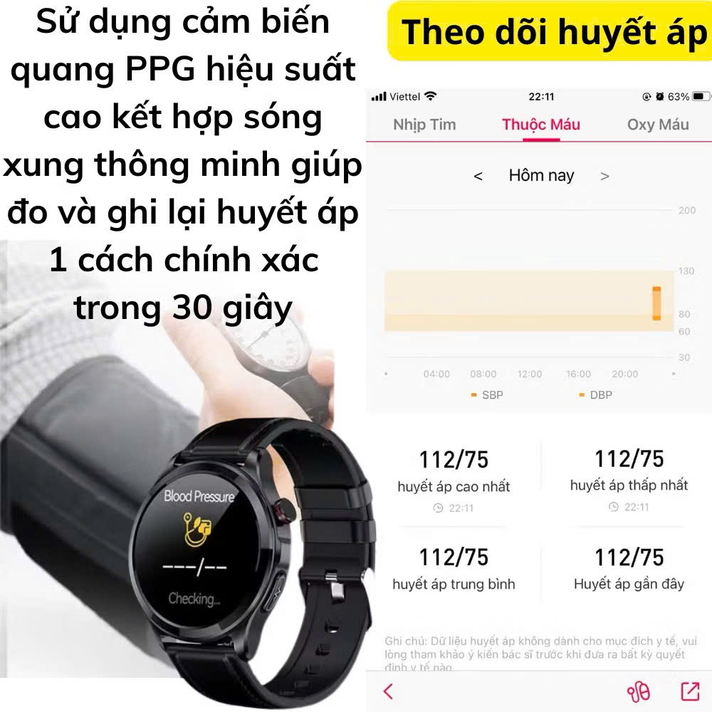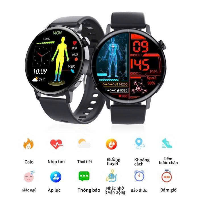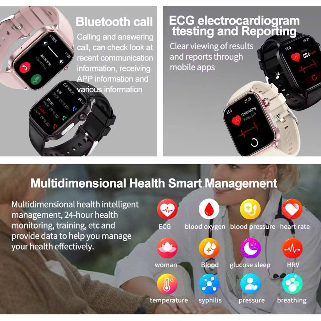 1. Hỗ trợ cuộc gọi BT, điện tâm đồ, ECG + PPG, theo dõi nhiệt độ cơ thể và theo dõi lượng đường trong máu